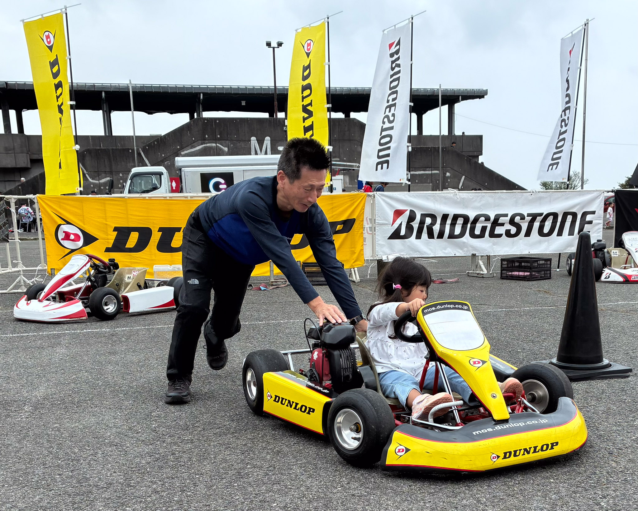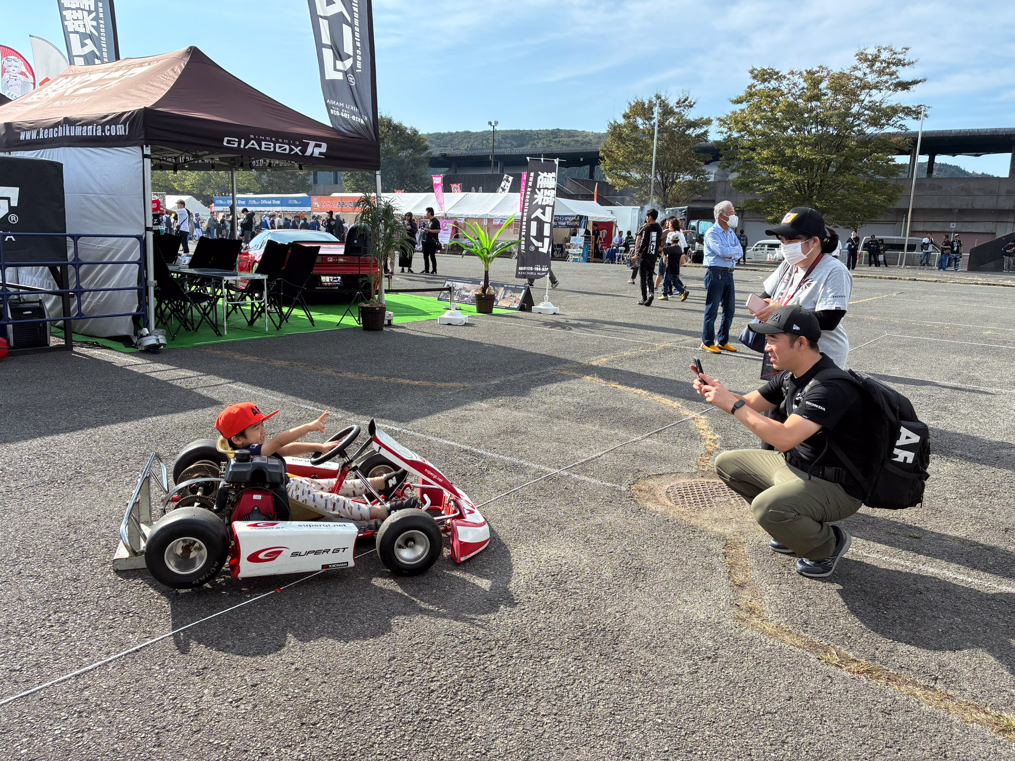参加したキッズの中には、走る前は緊張気味だったのに、走り終えると楽しくなって、スタッフとハイタッチを交わして笑顔で帰っていく、そんな様子が印象的でした。また、展示用のカートのタイヤを興味深そうに回しながら、じっとカートを見つめる小さなキッズの姿や、表彰台の記念撮影でお子さん以上に楽しそうにシャッターを切るお父さんの姿も見られました。