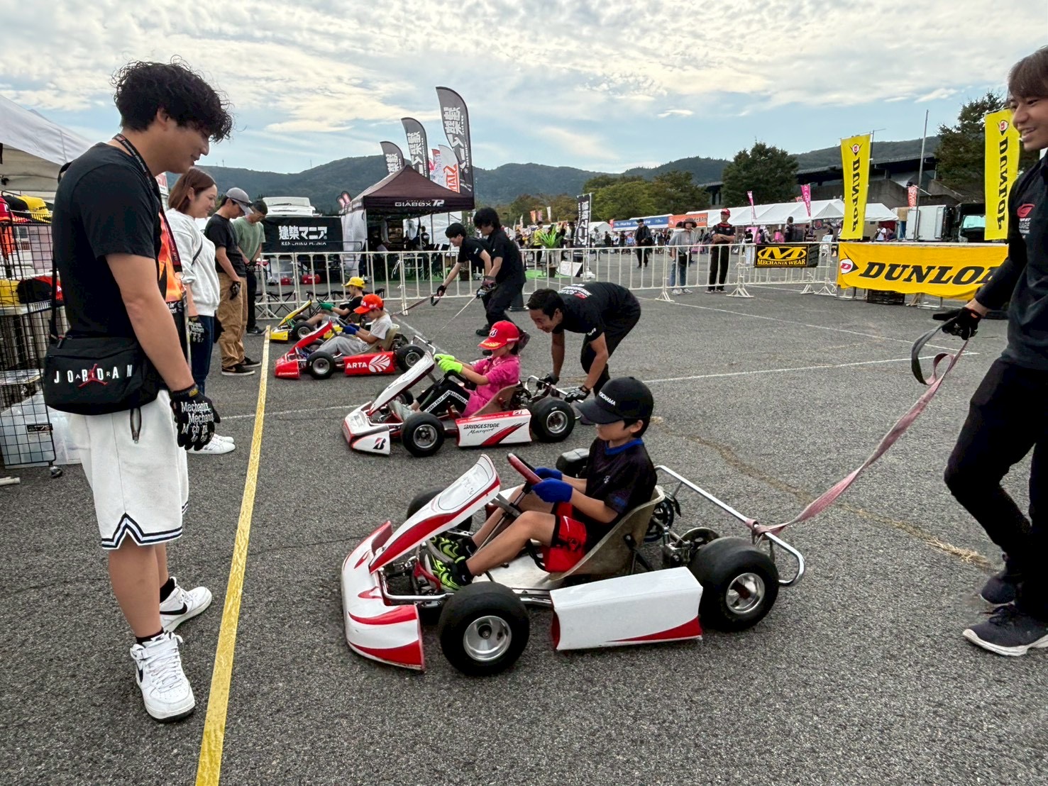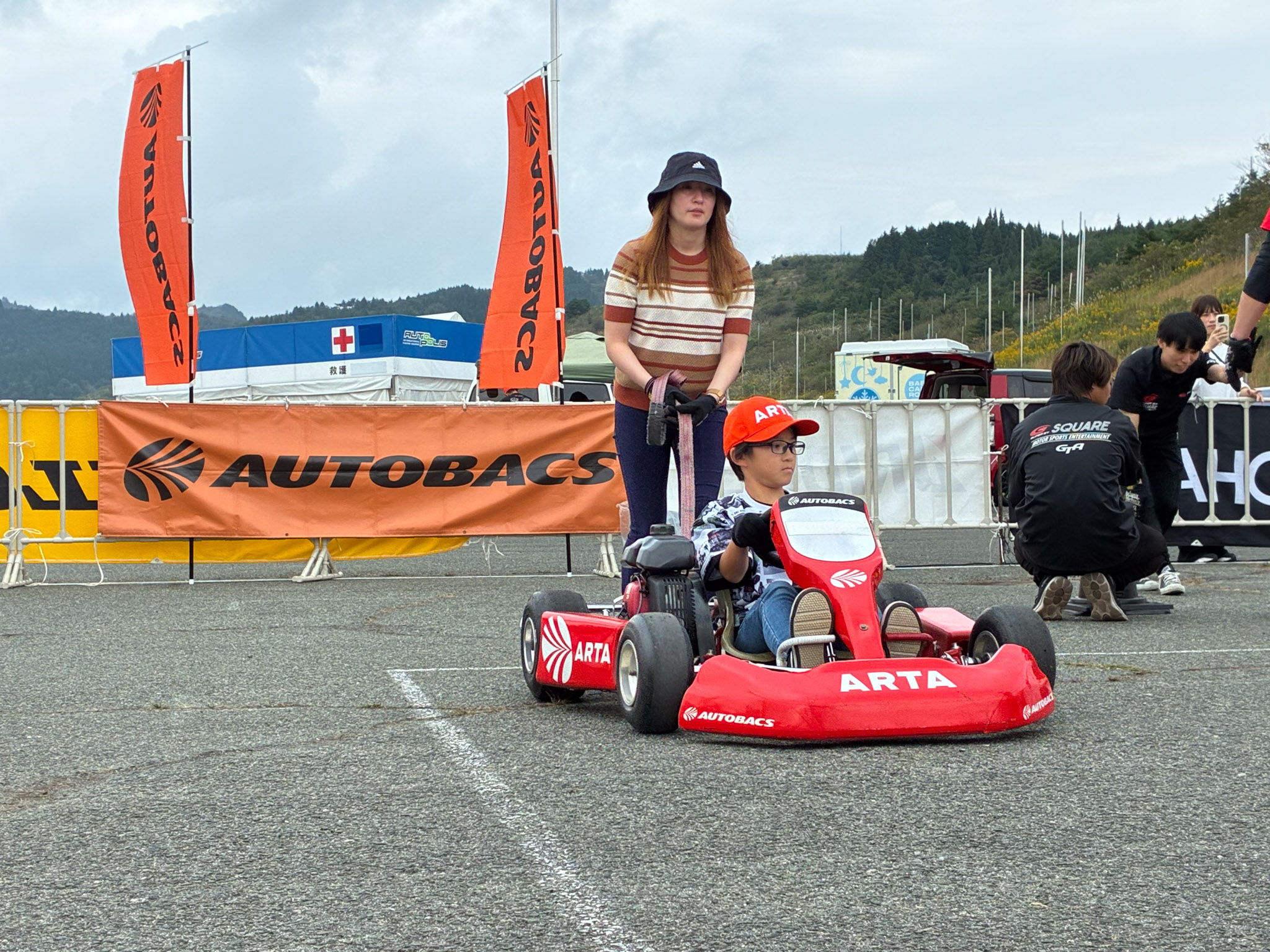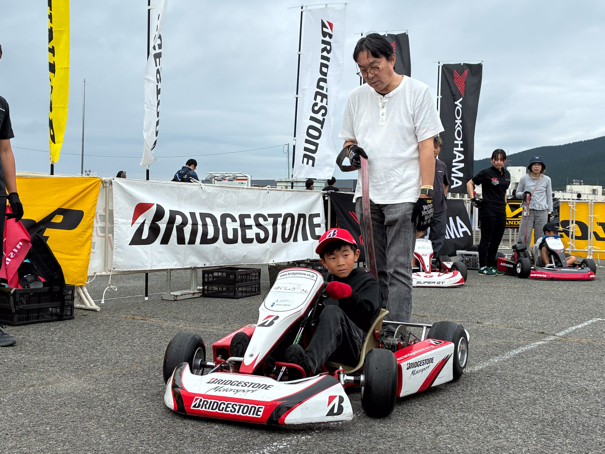 初日は雨が降る時間帯もありましたが、体験会は中止することなく全スケジュールを実施。2日目は早朝に霧が出る場面もありましたが、キッズカート体験には影響なく、全ての回を予定通り開催することができました。天候の変化を感じながらも、キッズ達の笑顔が絶えない2日間となりました。