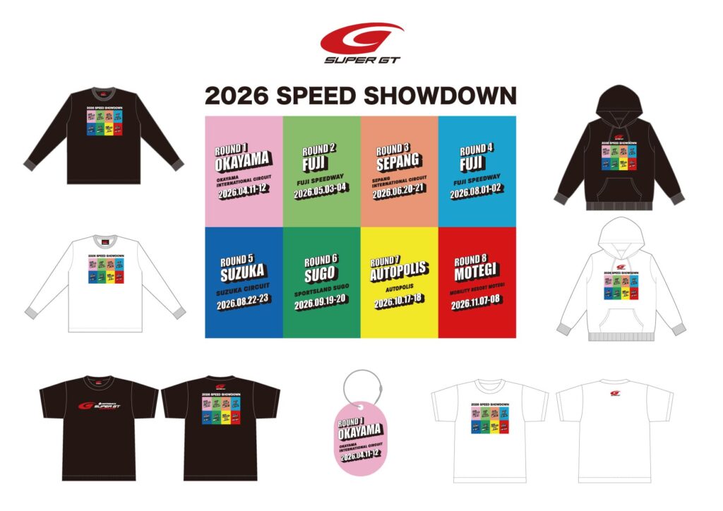 2026シーズン開幕戦となるRd.1 岡山では、2026シリーズロゴ商品をはじめ、各ラウンドをデザインに落とし込んだ2026シリーズツアー商品、さらにRd.1 岡山 大会限定フライトタグなどを販売予定です。