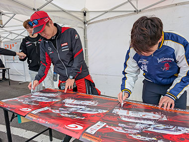 ドライバーのサイン入りグッズを抽選でプレゼントいたします。